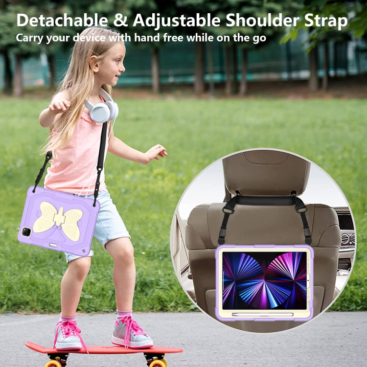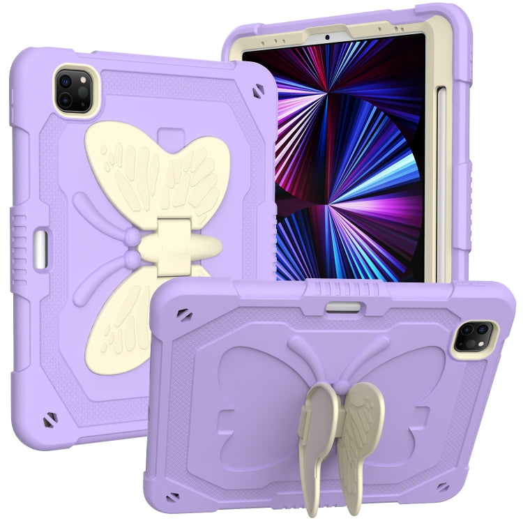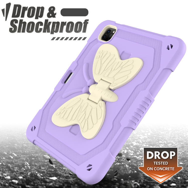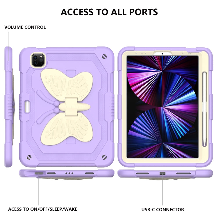 PC + Silicone Anti-drop Tablet Tablet Case with Butterfly Holder & Pen Slot for iPad Pro 11 2018 & 2020 & 2021 & Air 2020 10.9(Gream+Raro Purple)