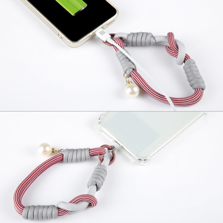 Pearl Splicing Round Twist Rope Short Lanyard(Purple Green)