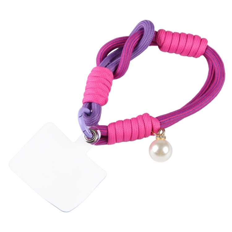 Pearl Splicing Round Twist Rope Short Lanyard(Rose Purple)