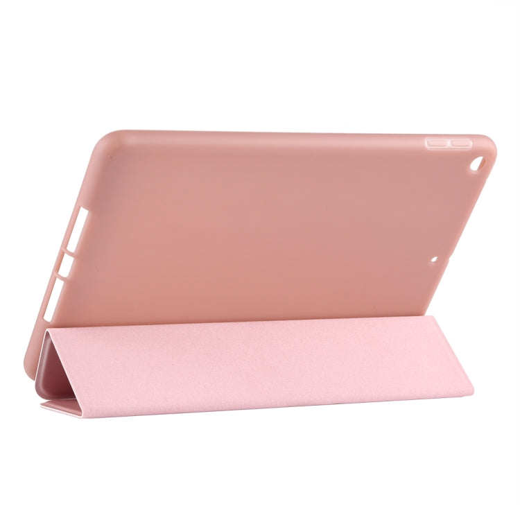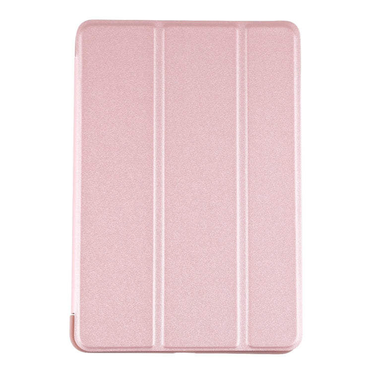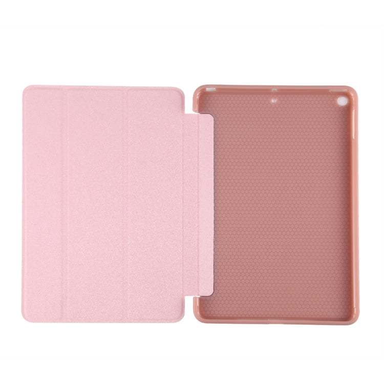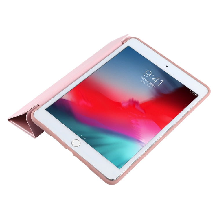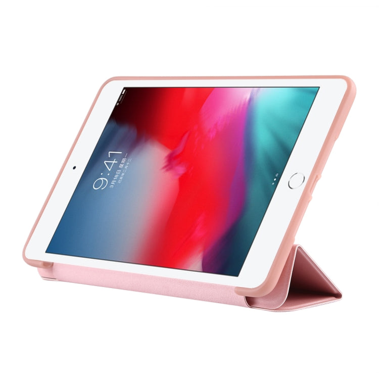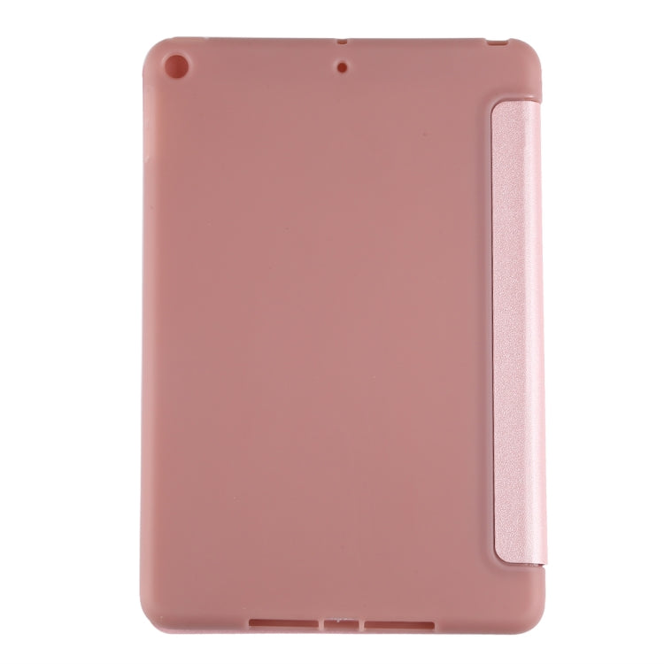 PU Plastic Bottom Case Foldable Deformation Left and Right Flip Leather Case with Three Fold Bracket & Smart Sleep for iPad mini 2019 (Rose Gold)