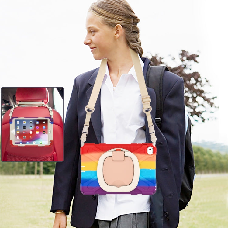 Silicone + PC Protective Case with Holder & Shoulder Strap For iPad mini 5 / 4(Rainbow Red)