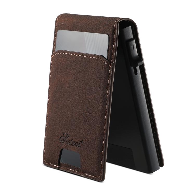 Suteni Litchi Texture Magnetic Key Press Automatically Pop Up Card Box(Brown)