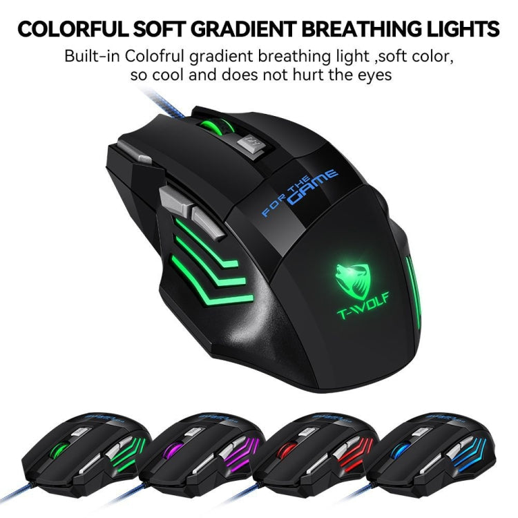 T-WOLF M1 7-keys RGB Atmosphere Light USB Gaming Wired Mouse(Black)