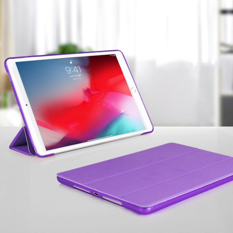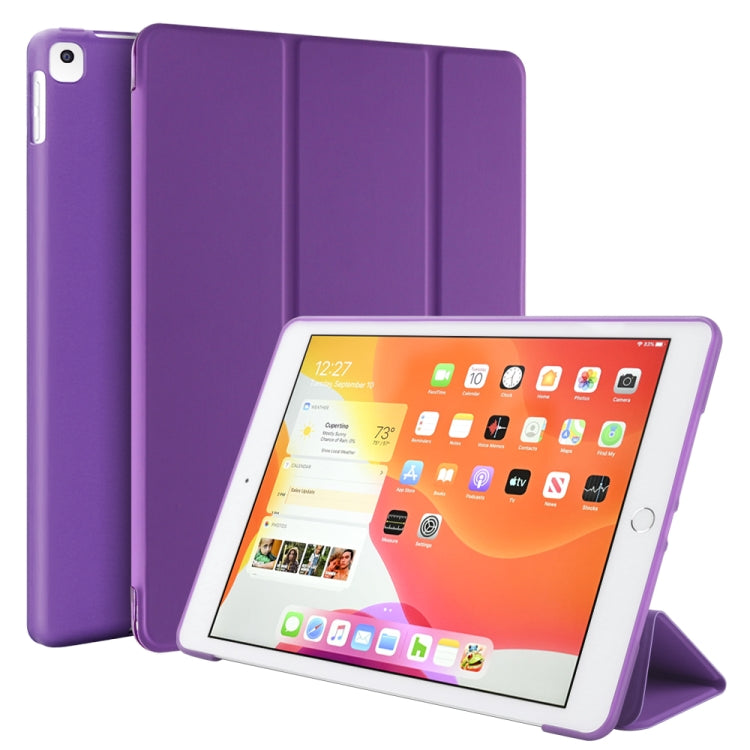 Three-folding Surface PU Leather TPU Matte Soft Bottom Case with Holder & Sleep / Wake-up Function For iPad 10.2 2021 / 2020 / 2019 / iPad Pro 10.5 inch (Purple)