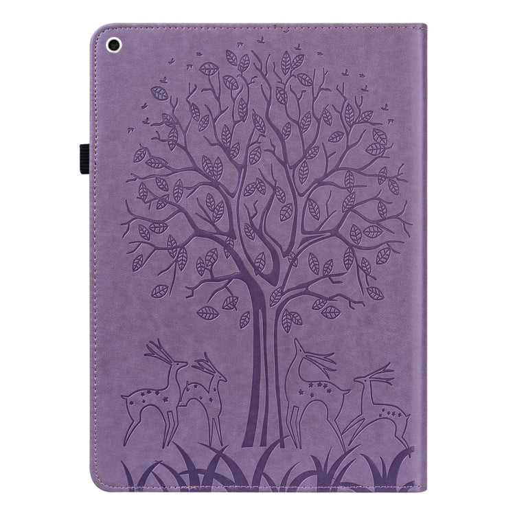Tree & Deer Pattern Pressed Printing Horizontal Flip PU Leather Case with Holder & Card Slots & Sleep / Wake-up Function For iPad 9.7 2018/2017/Air 2/Air(Purple)