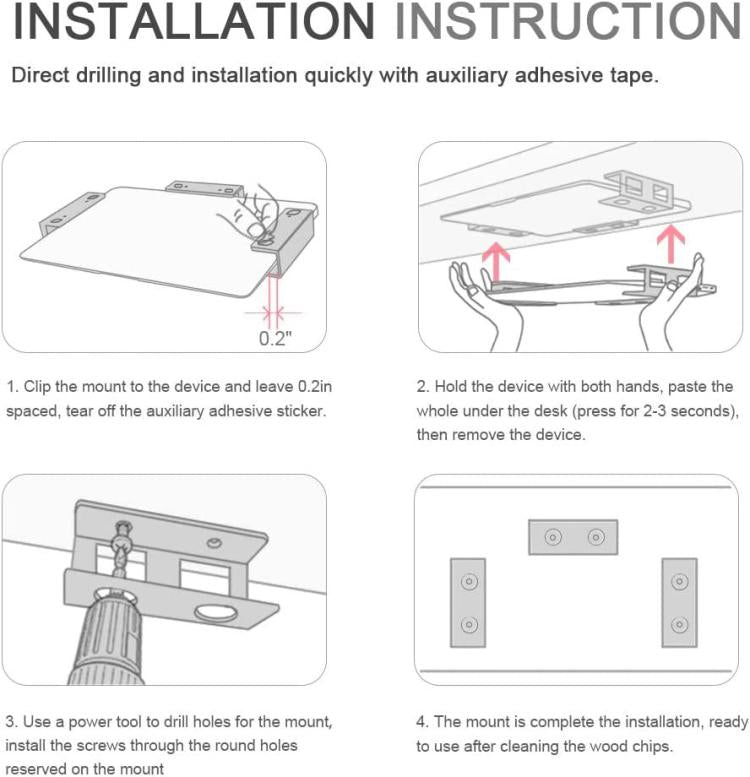 Under Desk Laptop Tablet Storage Mount Kit Office Storage Organize(Black)