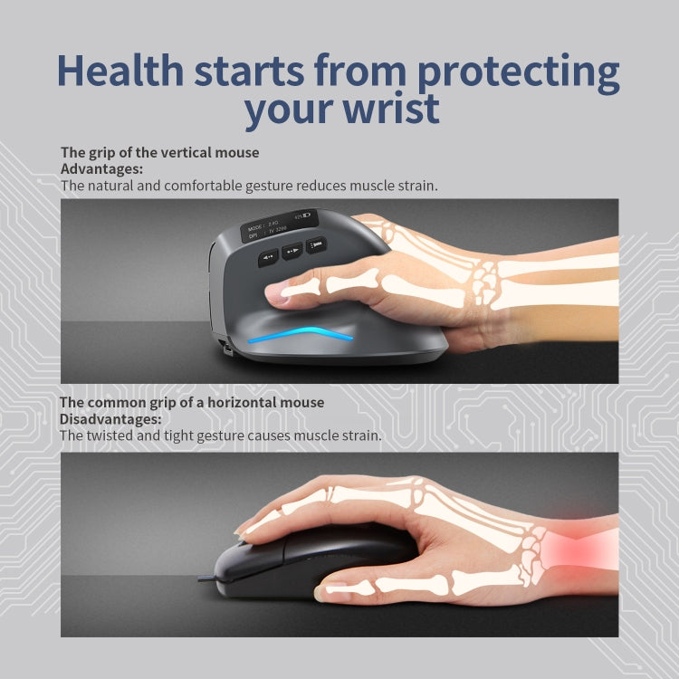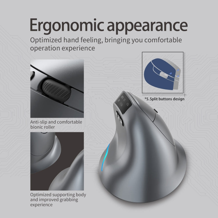 ZELOTES F-26C 8-Keys 2.4G+Bluetooth Dual-Mode LED Display Vertical Grip Wireless Mouse(Gray)