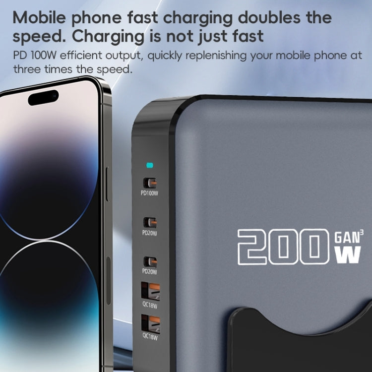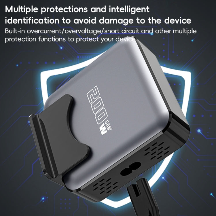 200W GaN 3 Type-C 2 USB Multi Ports Sharing Desktop Charger, Plug:UK Plug(Grey)