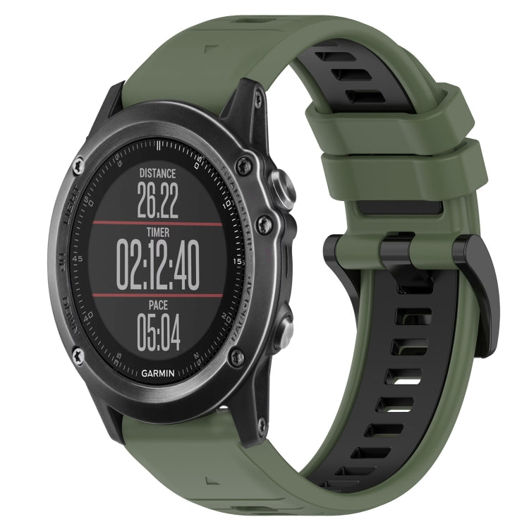 For Garmin Fenix 3 Sapphire Sports Two-Color 26mm Silicone Watch Band(Olive Green+Black)