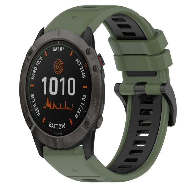 For Garmin Fenix 6X Pro Sports Two-Color 26mm Silicone Watch Band(Olive Green+Black)