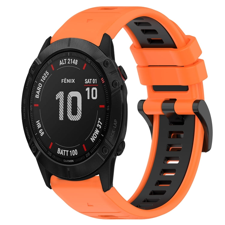 For Garmin Fenix 6X Sapphire Sports Two-Color 26mm Silicone Watch Band(Orange+Black)