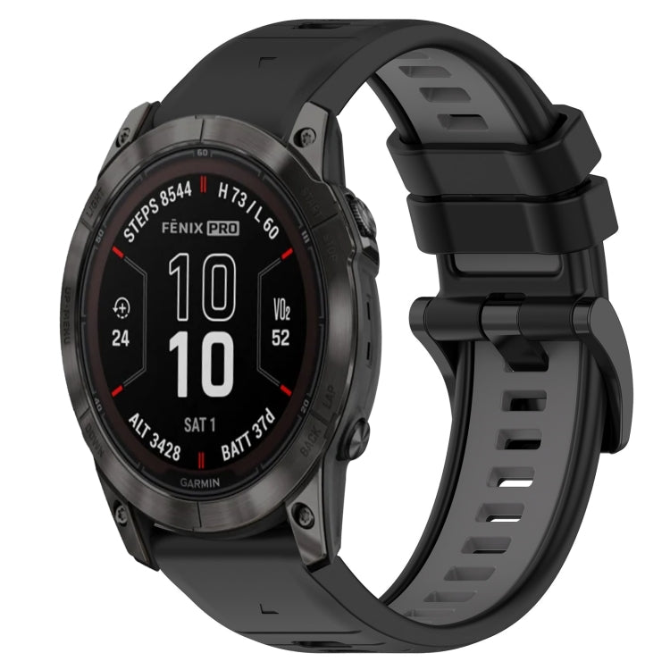 For Garmin Fenix 7X Pro 51mm Sports Two-Color 26mm Silicone Watch Band(Black+Grey)