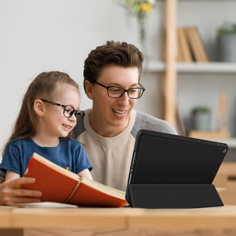 For iPad 10.2 2021 / 2020 / 2019 3-fold TPU Smart Leather Tablet Case with Pen Slot(Black)