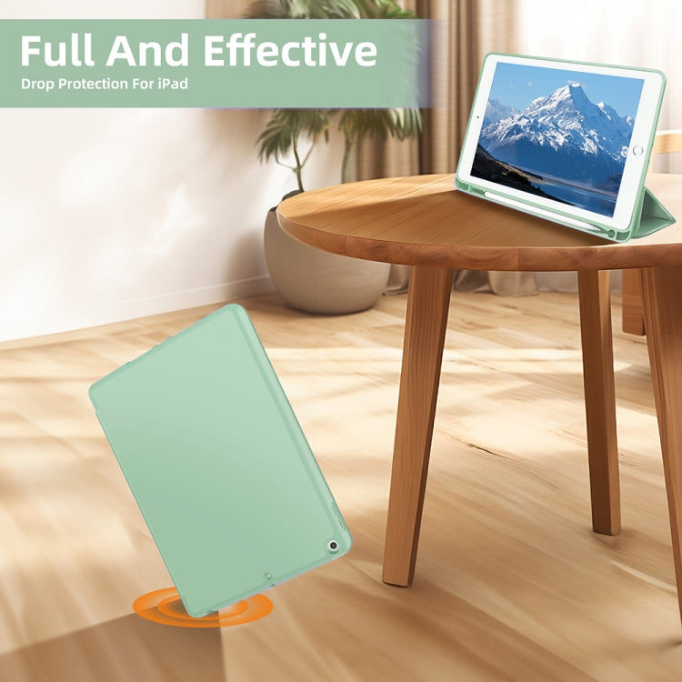 For iPad 10.2 2021 / 2020 / 2019 3-fold TPU Smart Leather Tablet Case with Pen Slot(Green)