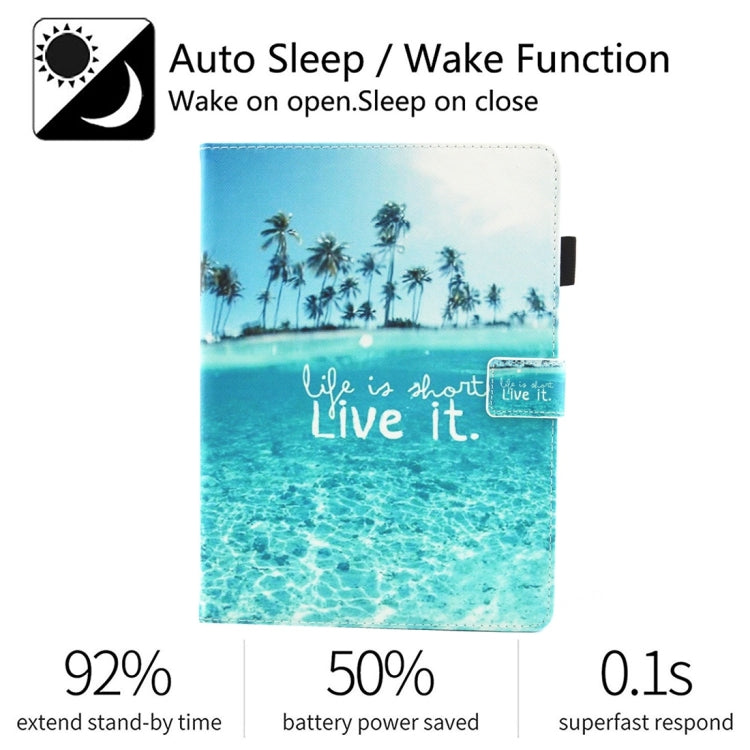 For iPad 10.2 2021 / 2020 / 2019 Coloured Drawing Pattern Horizontal Flip Leather Case with Holder & Card Slots & Photo Frame(Beach)