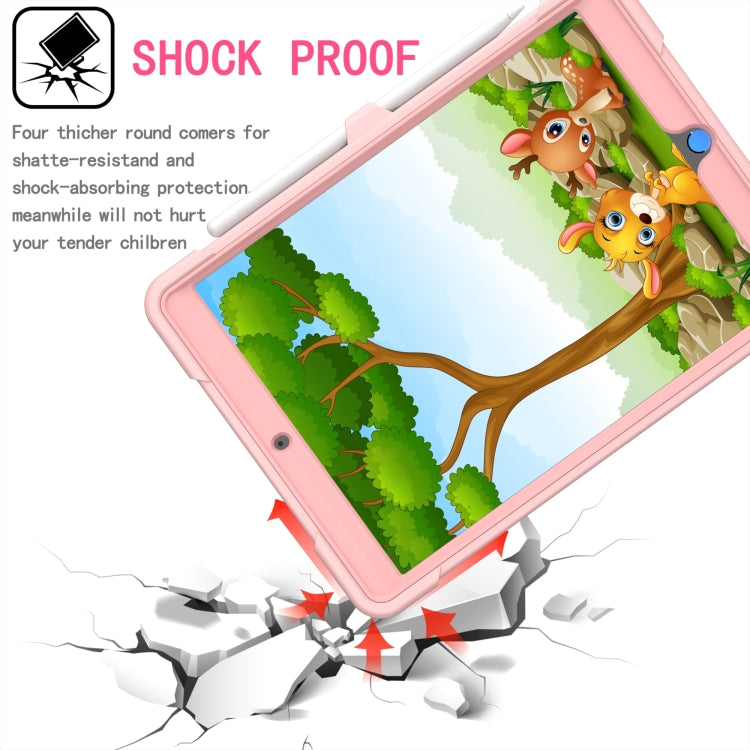 For iPad 10.2 2021 / 2020 / 2019 Contrast Color Shockproof Robot Silicone + PC Case with Wristband Holder(Rose Gold)