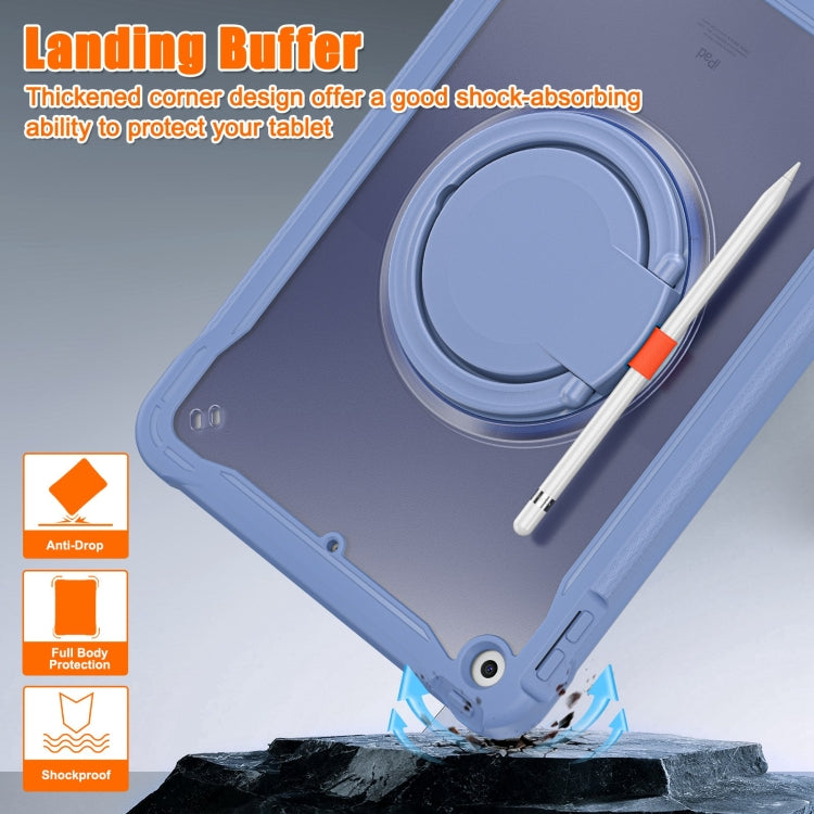 For iPad 10.2 2021 / 2020 / 2019 Heavy Duty Hybrid Tablet Case with Handle & Strap(Lavender Grey)