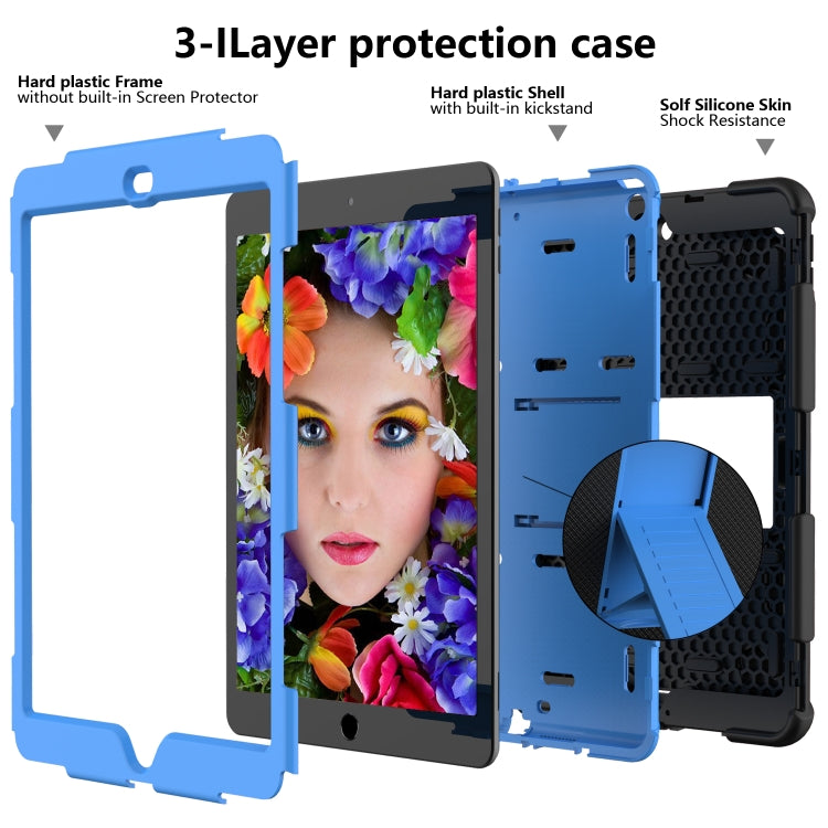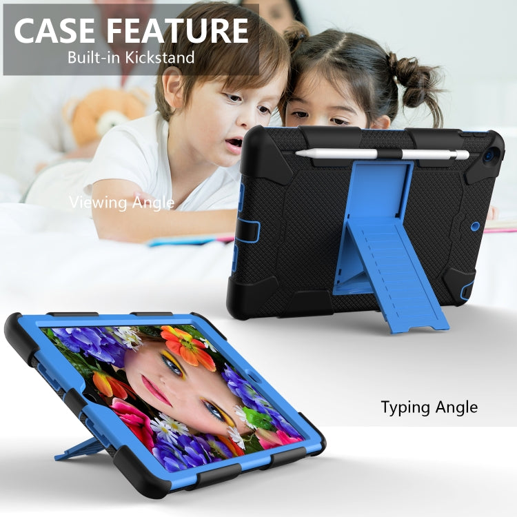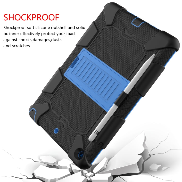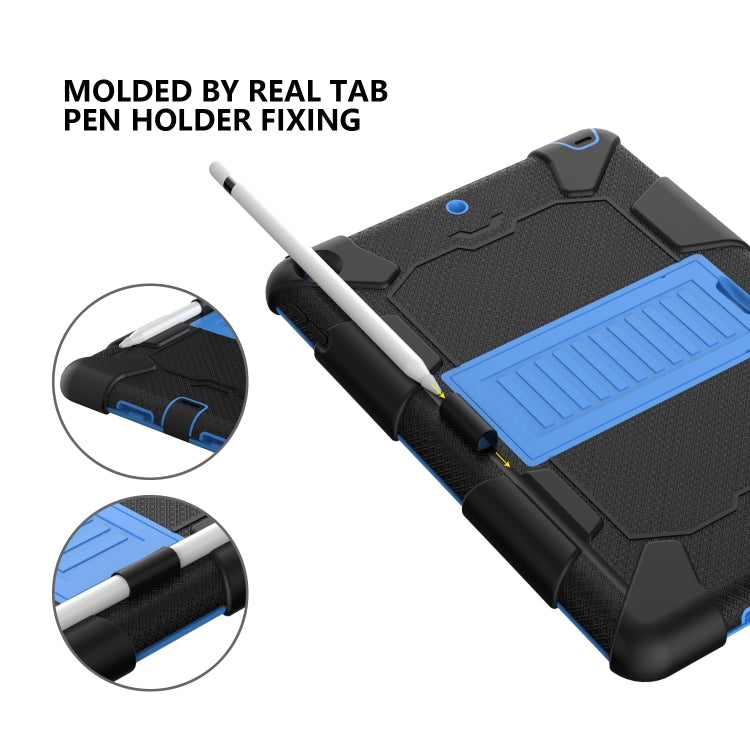 For iPad 10.2 Shockproof Two-Color Silicone Protection Case with Holder & Pen Slot(Black+Blue)