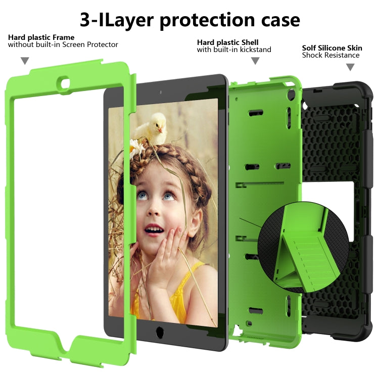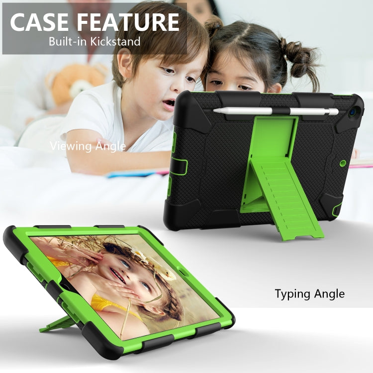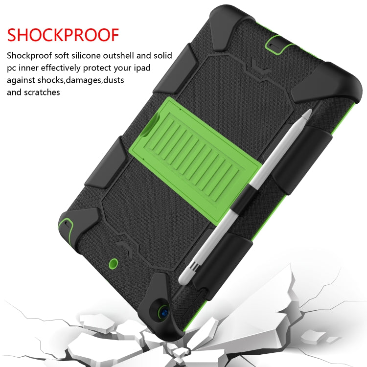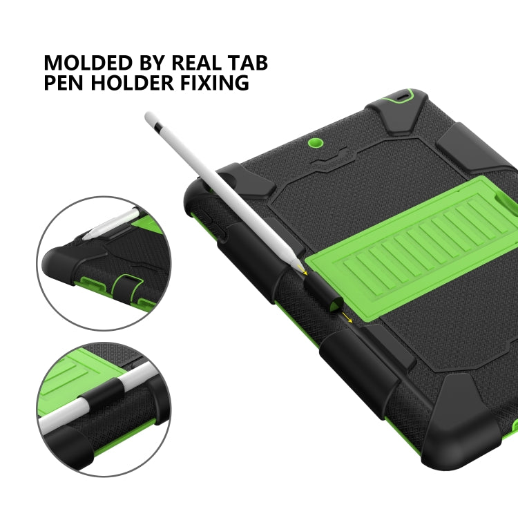 For iPad 10.2 Shockproof Two-Color Silicone Protection Case with Holder & Pen Slot(Black+Green)