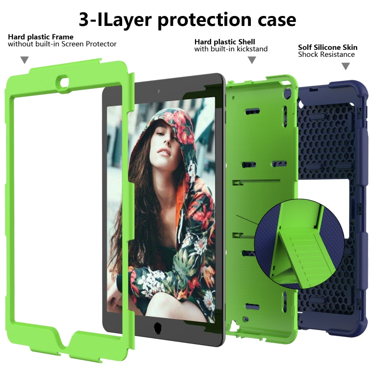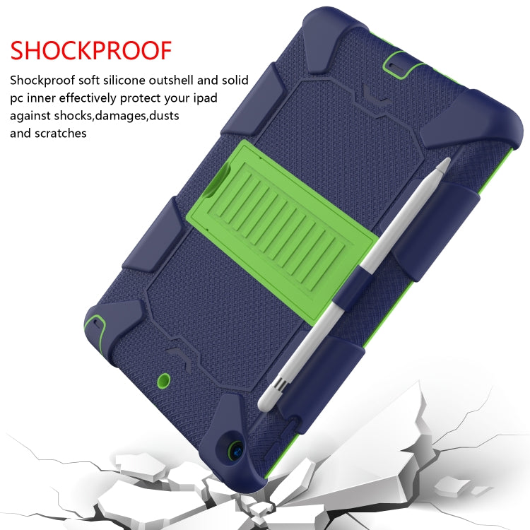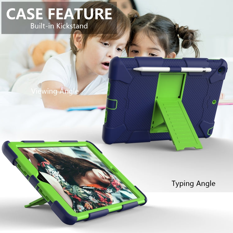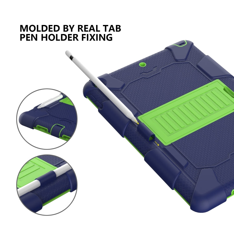 For iPad 10.2 Shockproof Two-Color Silicone Protection Case with Holder & Pen Slot(Dark Blue+Green)
