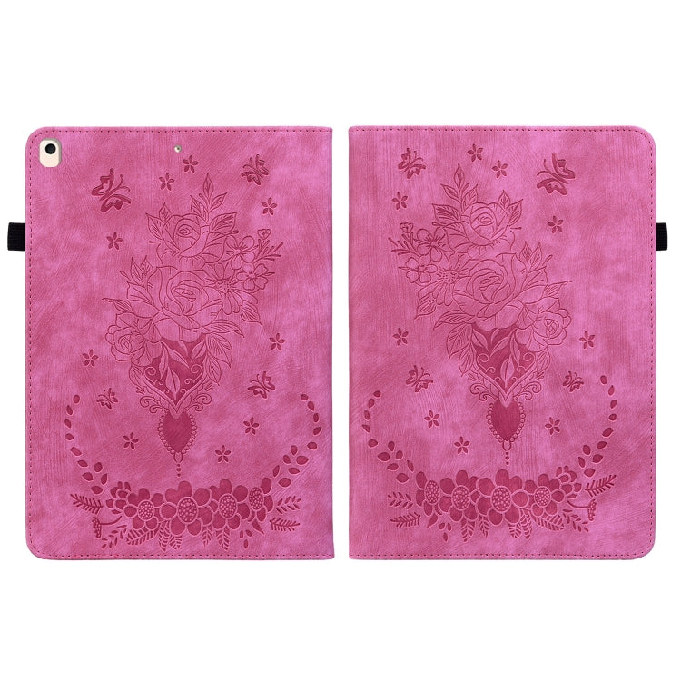 For iPad 9.7 2018 / 2017 / Air / Air 2 Butterfly Rose Embossed Leather Smart Tablet Case(Rose Red)