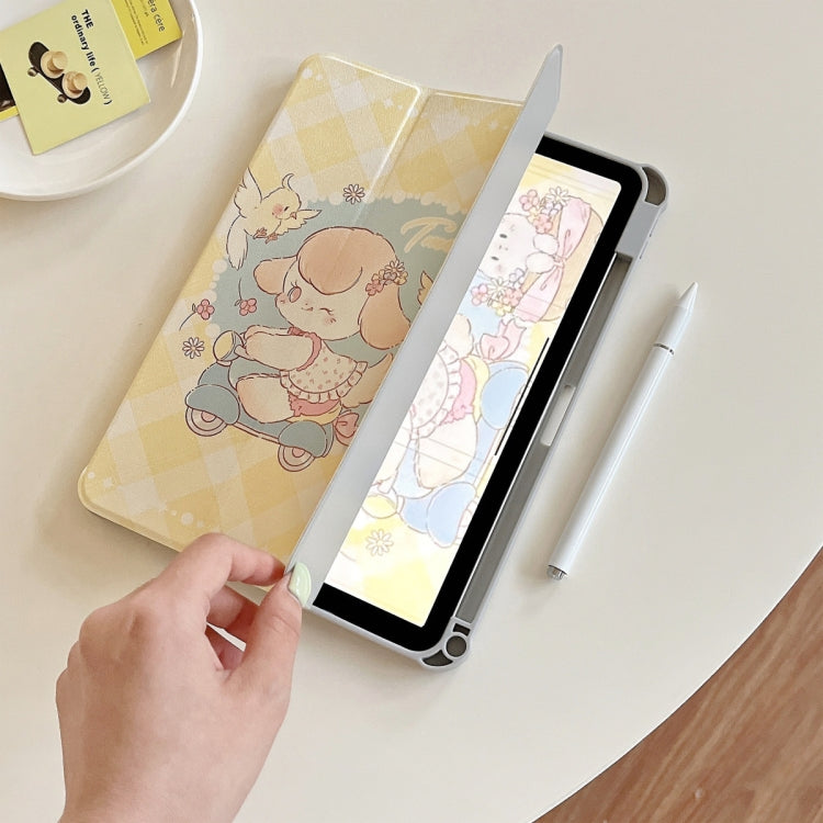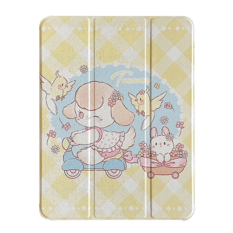 For iPad Air 11 2025 / 2024 3-Fold 360 Rotation Painted Leather Smart Tablet Case(Cycling Dog)