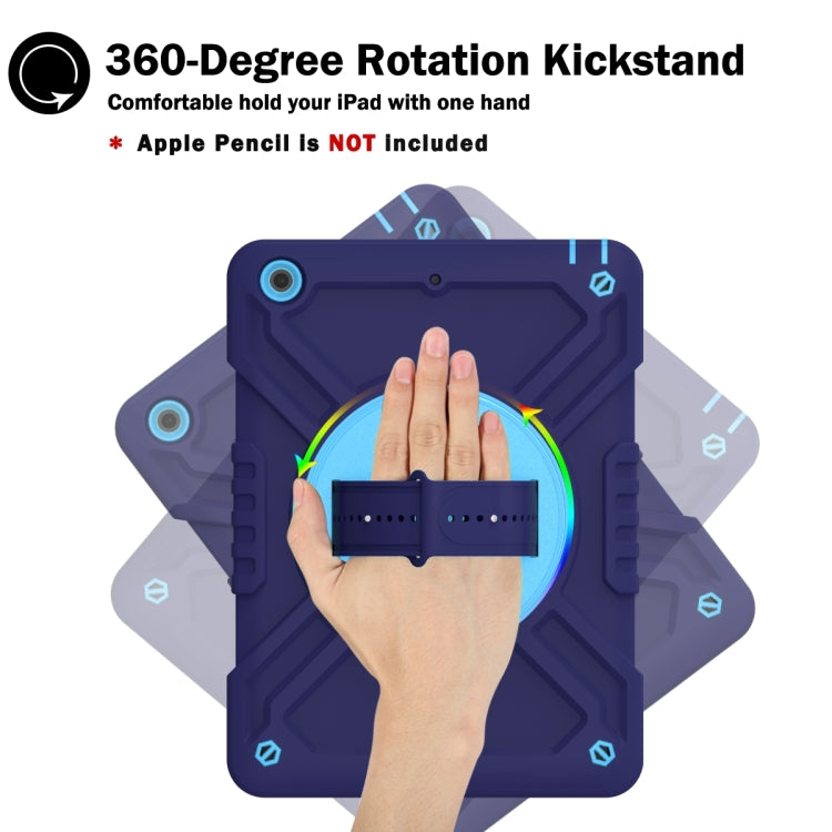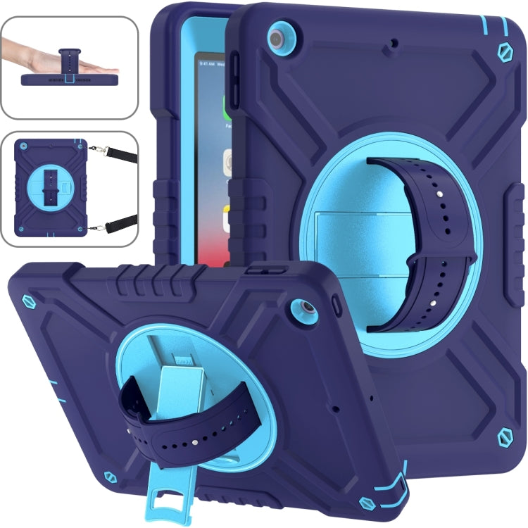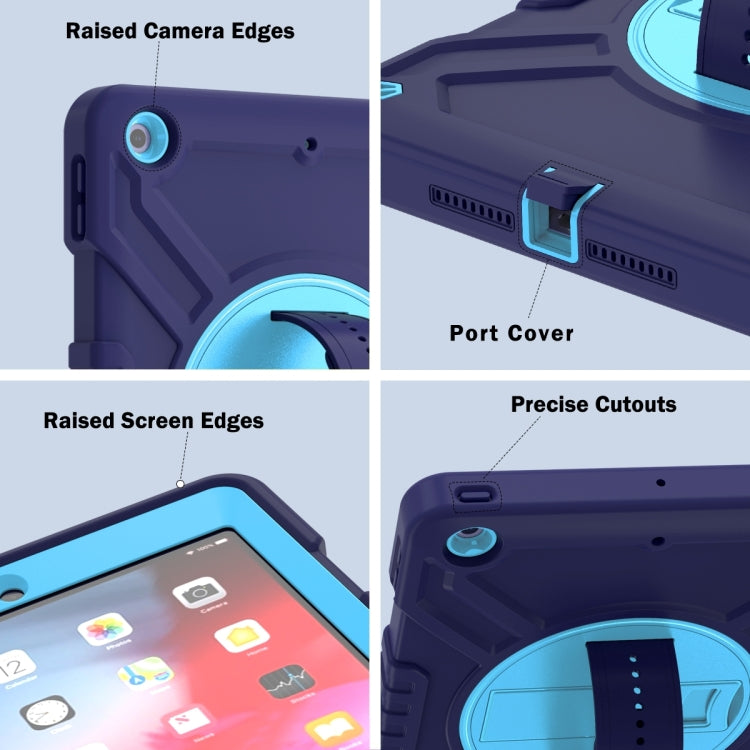 For iPad Air / Air 2 / 9.7 2018 / 2017 X Rotation PC Hybrid Silicone Tablet Case with Strap(Navy Sky Blue)