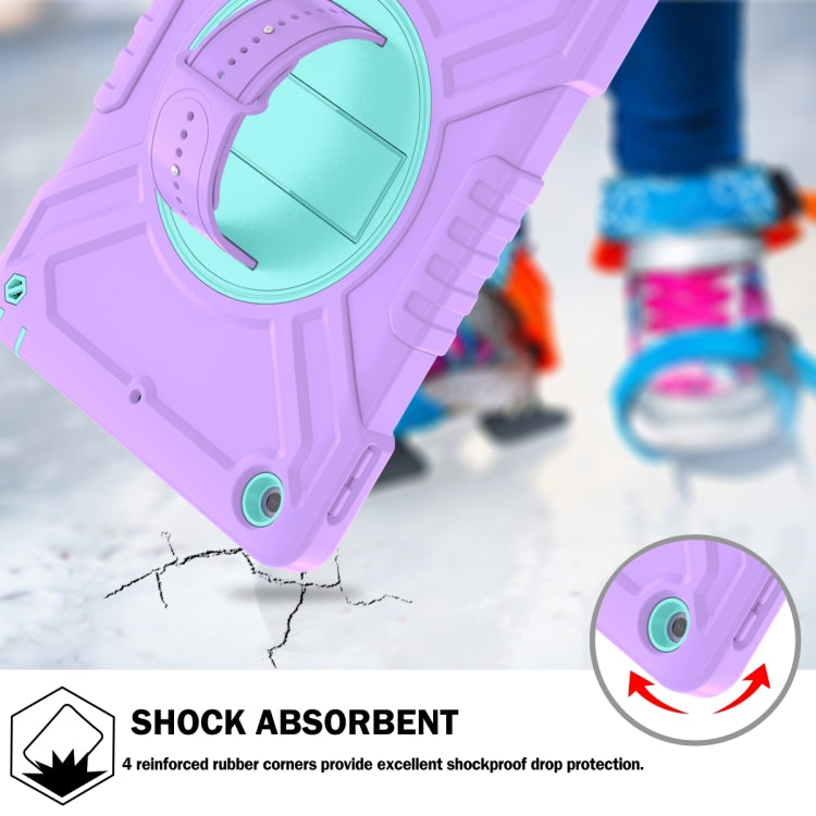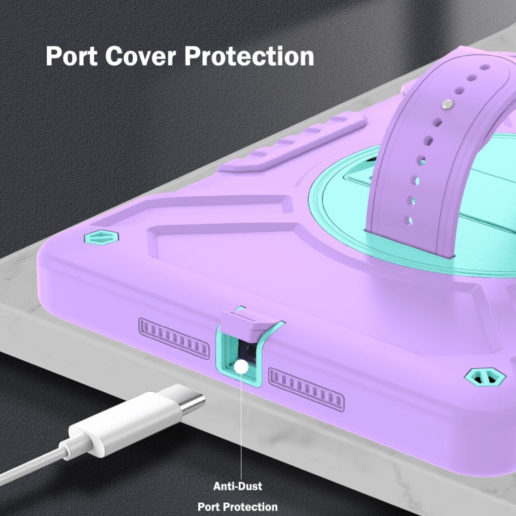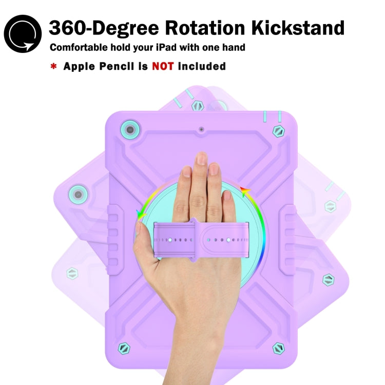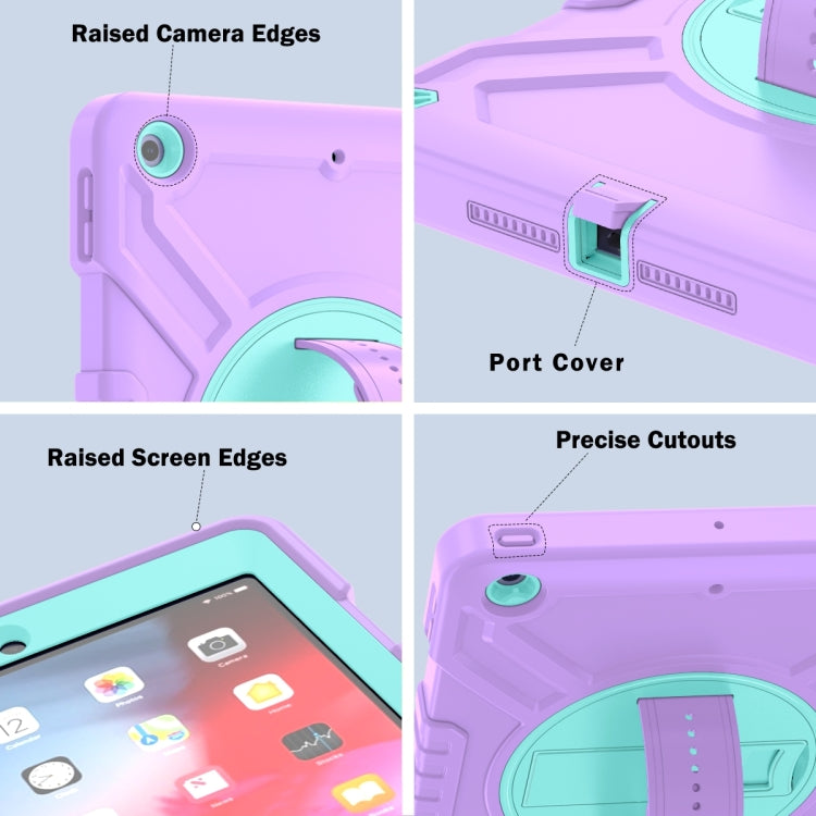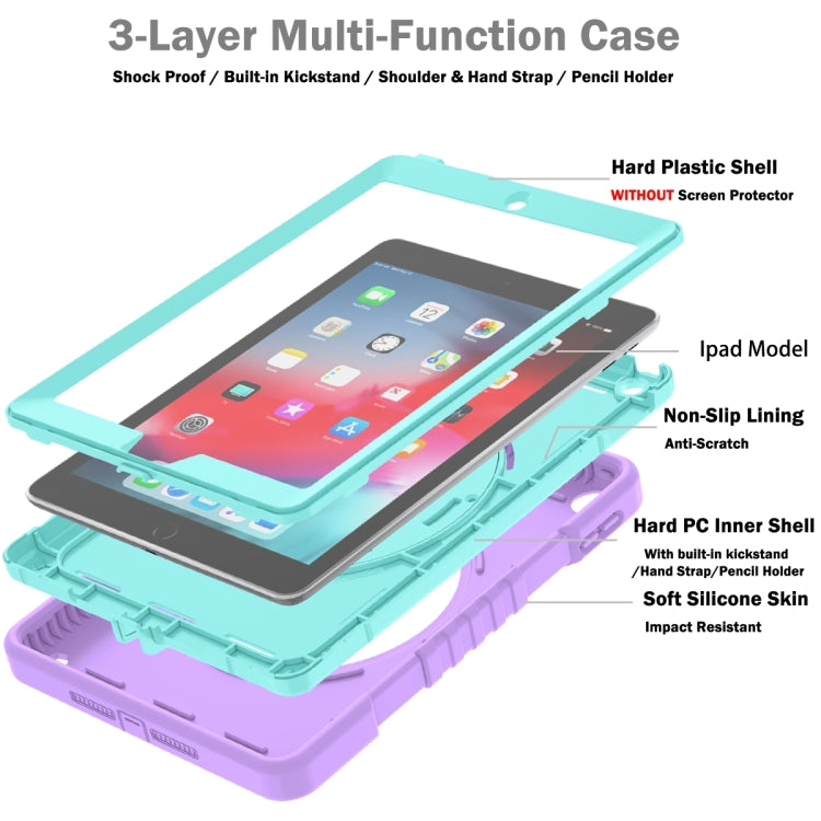 For iPad Air / Air 2 / 9.7 2018 / 2017 X Rotation PC Hybrid Silicone Tablet Case with Strap(Purple Cyan)