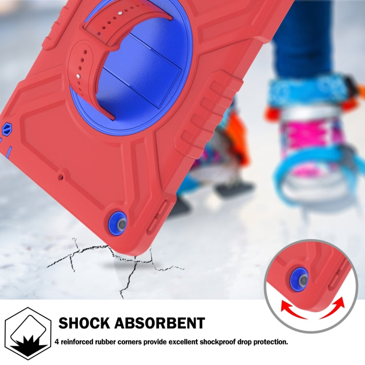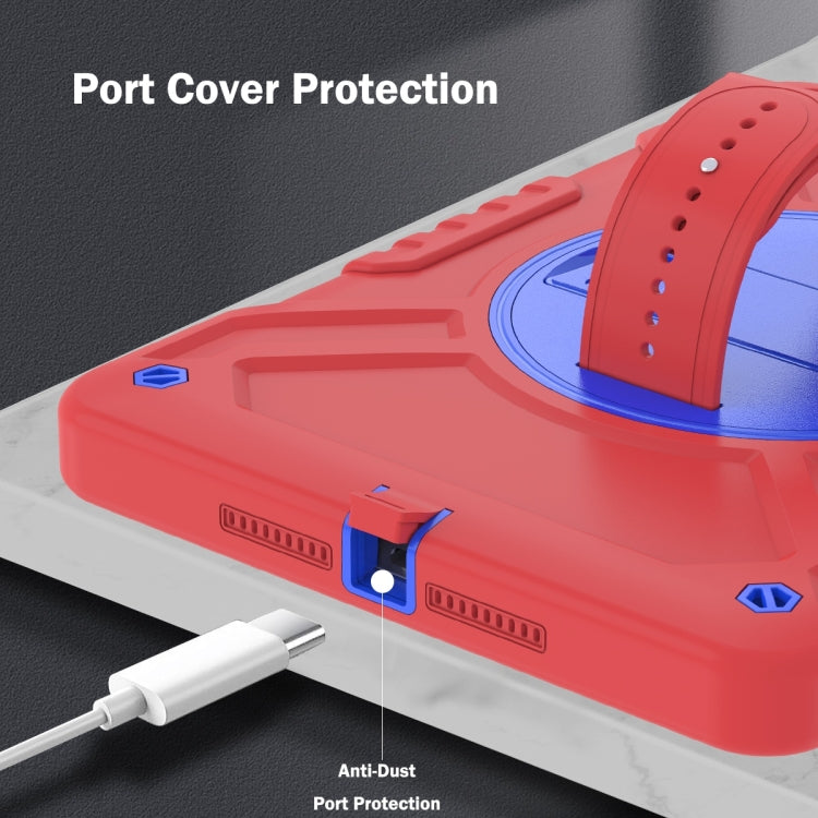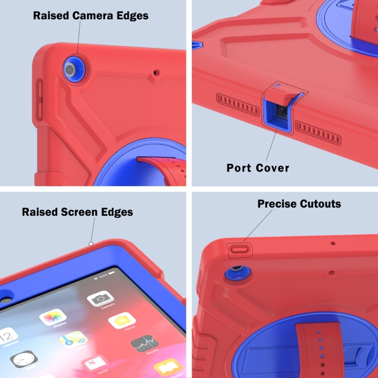 For iPad Air / Air 2 / 9.7 2018 / 2017 X Rotation PC Hybrid Silicone Tablet Case with Strap(Red Blue)