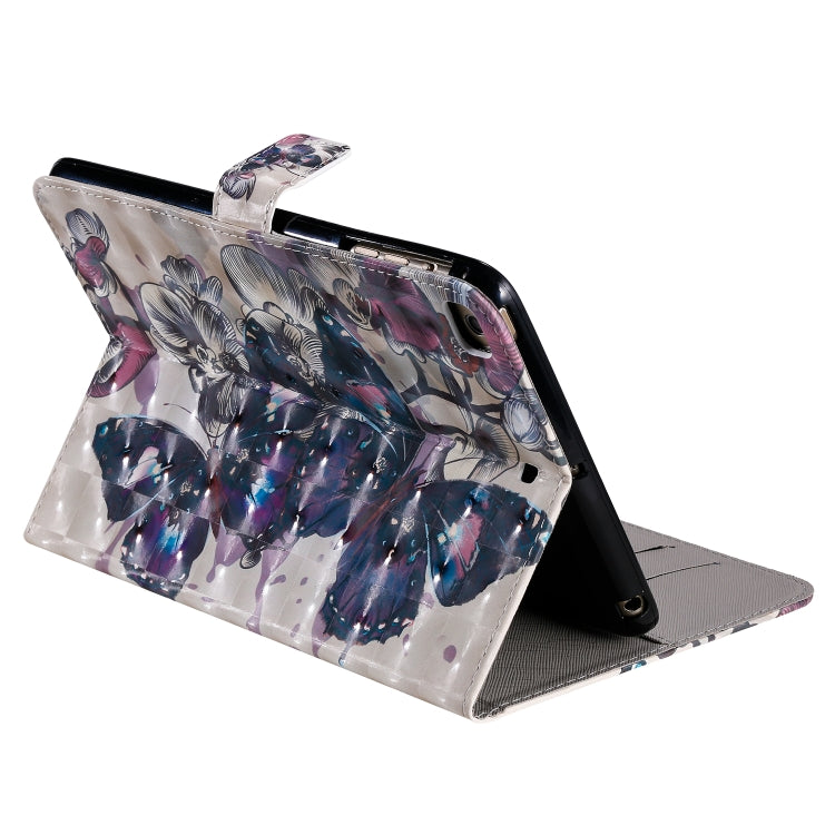 For iPad Mini 2019 & 4 & 3 & 2 & 1 3D Colored Drawing Horizontal Flip Leather Case with Holder & Card Slots & Wallet & Sleep / Wake-up Function(Black Butterfly)