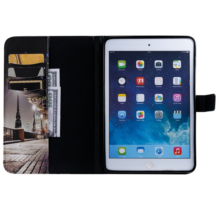 For iPad Mini 2019 & 4 & 3 & 2 & 1 3D Colored Drawing Horizontal Flip Leather Case with Holder & Card Slots & Wallet & Sleep / Wake-up Function(Cityscape)
