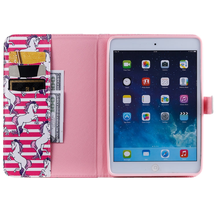 For iPad Mini 2019 & 4 & 3 & 2 & 1 3D Colored Drawing Horizontal Flip Leather Case with Holder & Card Slots & Wallet & Sleep / Wake-up Function(Horse)