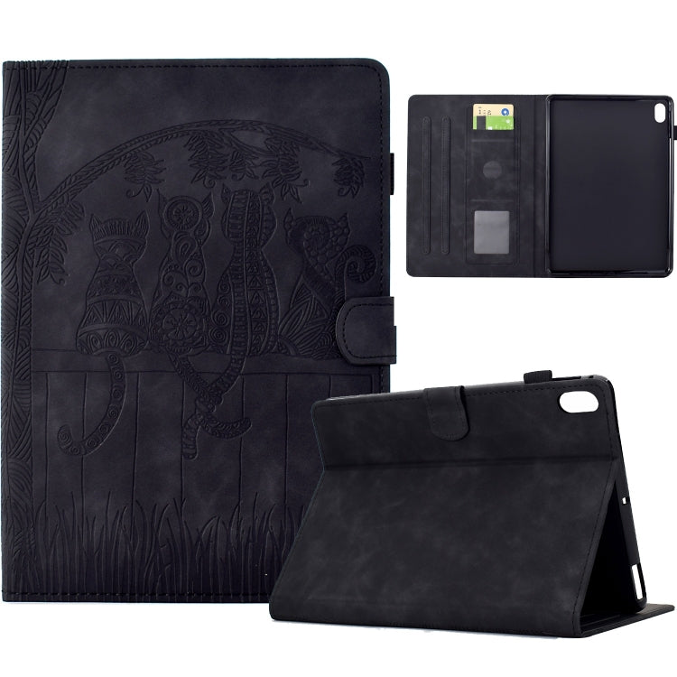 For iPad mini 6 / mini 2024 Cats Embossed Leather Smart Tablet Case(Black)