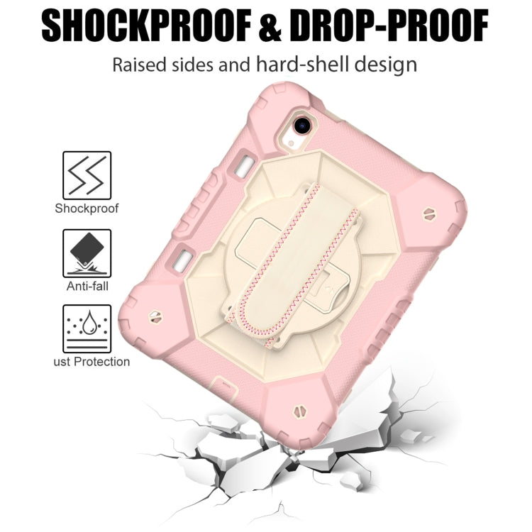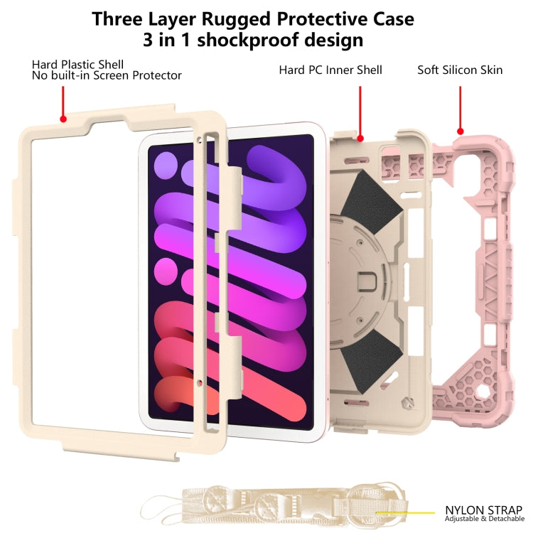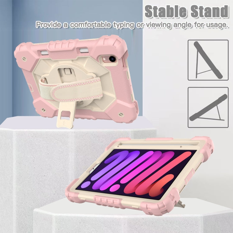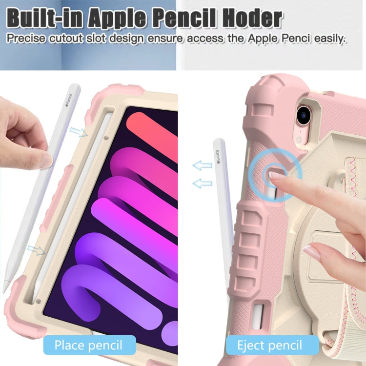For iPad mini 2024 / mini 6 Contrast Color Robot Silicone + PC Tablet Case with Shoulder Strap(Rose Gold+Beige)