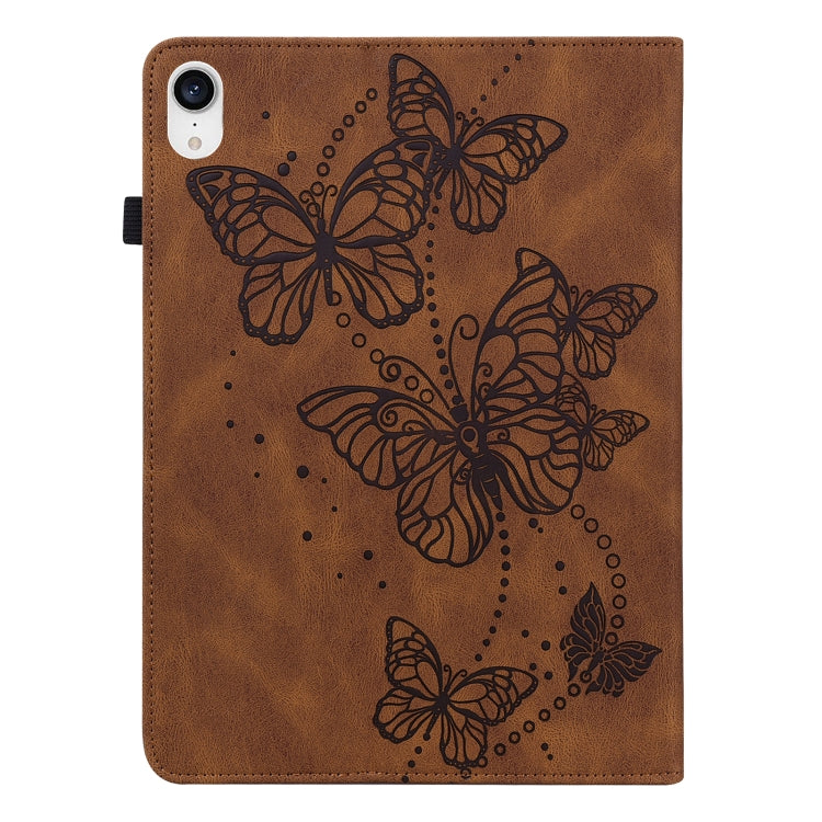 For iPad mini 2024 / mini 6 Embossed Butterfly Pattern Horizontal Flip Leather Tablet Case(Brown)