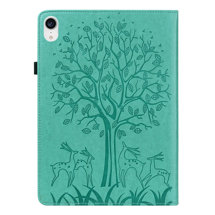 For iPad mini 6 / mini 2024 Tree & Deer Pattern Pressed Printing Leather Tablet Case(Green)