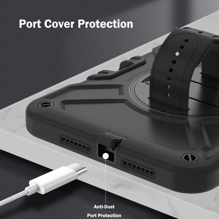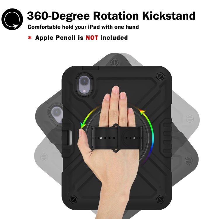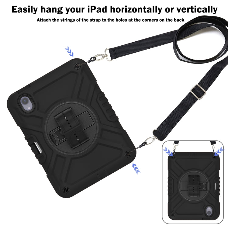 For iPad mini 6 / mini 2024 X Rotation PC Hybrid Silicone Tablet Case with Strap(Full Black)