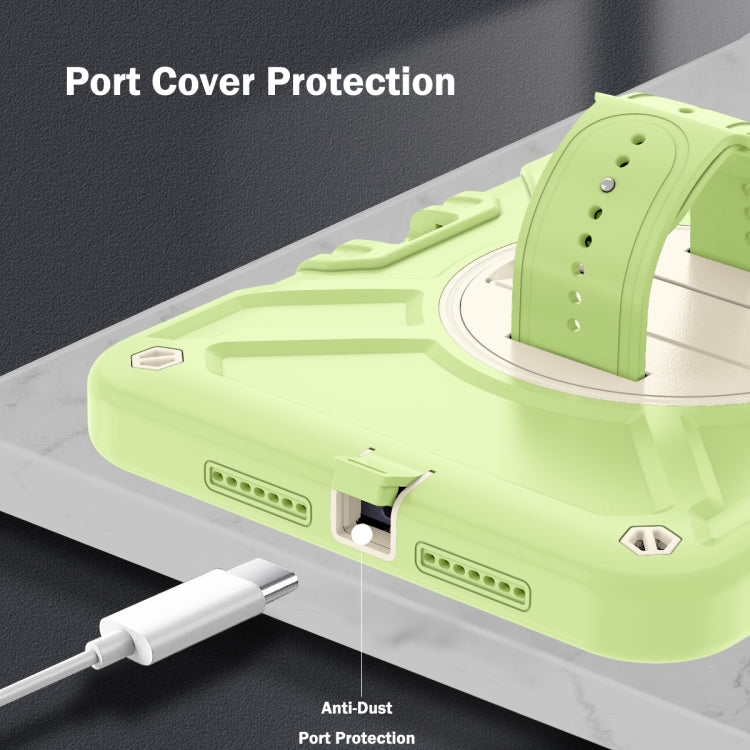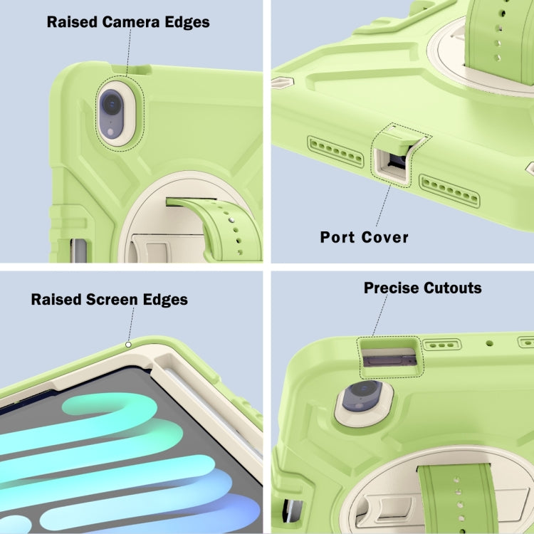 For iPad mini 6 / mini 2024 X Rotation PC Hybrid Silicone Tablet Case with Strap(Yellow Green White)