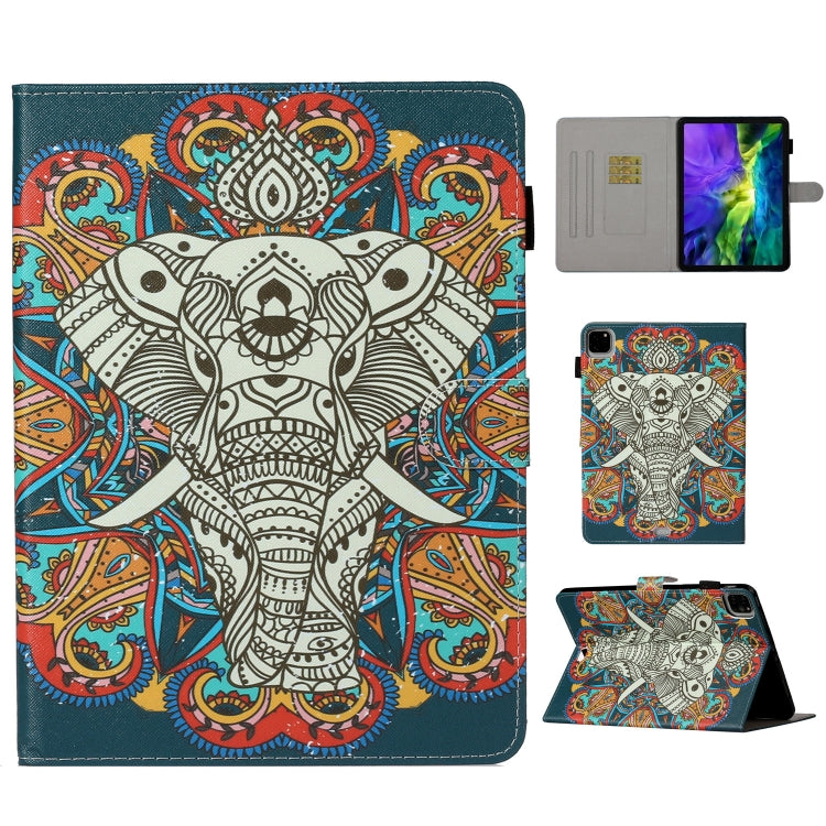 For iPad Pro 11 (2020) Colored Drawing Pattern Horizontal Flip PU Leather Tablet Case with Holder & Card Slot & Sleep / Wake-up Function(Colorful Elephant)