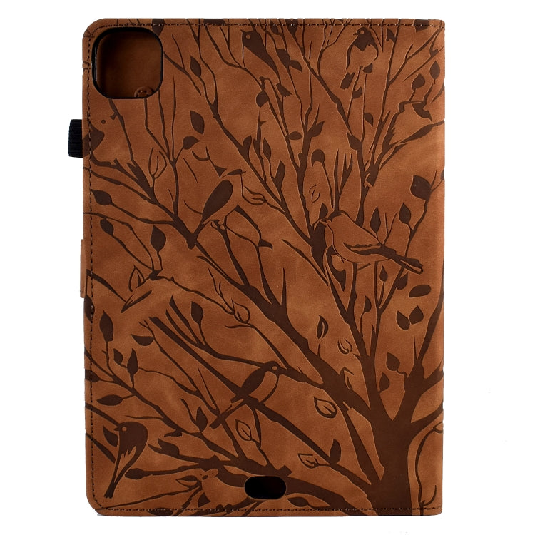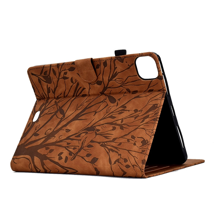 For iPad Pro 11 / Air 4 10.9 2020 / Air 5 10.9 Fortune Tree Pressure Flower PU Tablet Case with Wake-up / Sleep Function(Brown)
