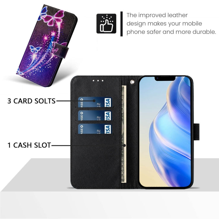 For iPhone 16e Art Colored Drawing Pattern Leather Phone Case(Fireworks butterfly)