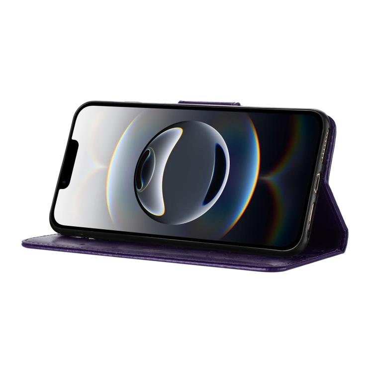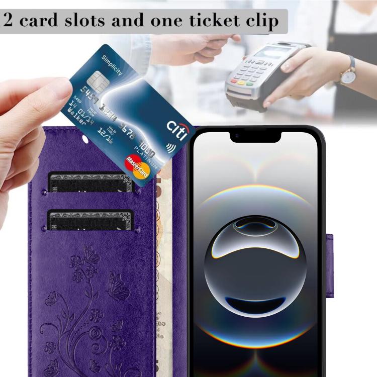 For iPhone 16e Butterfly Flower Pattern Flip Leather Phone Case(Dark Purple)