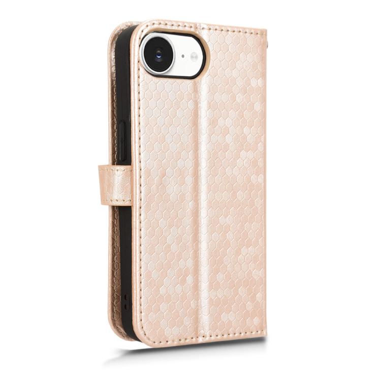 For iPhone 16e Honeycomb Dot Texture Leather Phone Case(Gold)