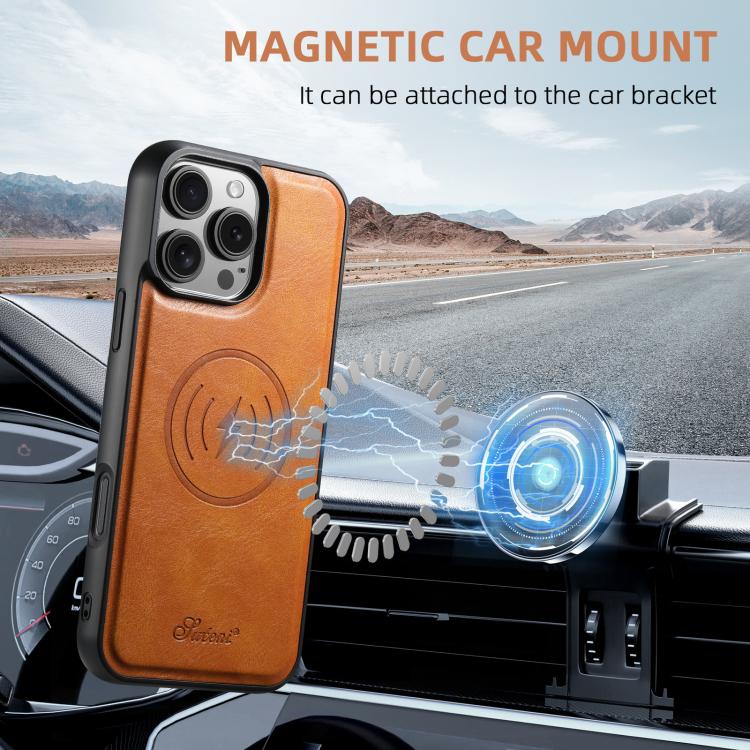 For iPhone 16e Suteni H15 MagSafe Oil Eax Leather Detachable Wallet Back Phone Case(Khaki)