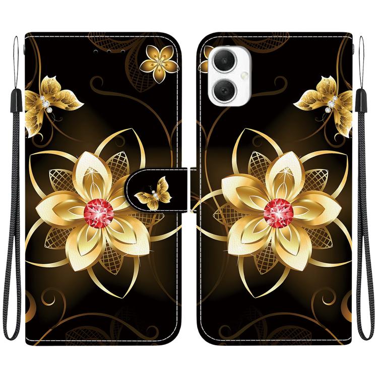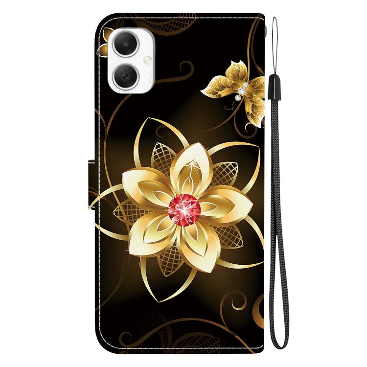 For Samsung Galaxy A05 Crystal Texture Colored Drawing Leather Phone Case(Gold Flower)