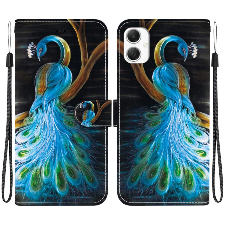 For Samsung Galaxy A05 Crystal Texture Colored Drawing Leather Phone Case(Peacock)