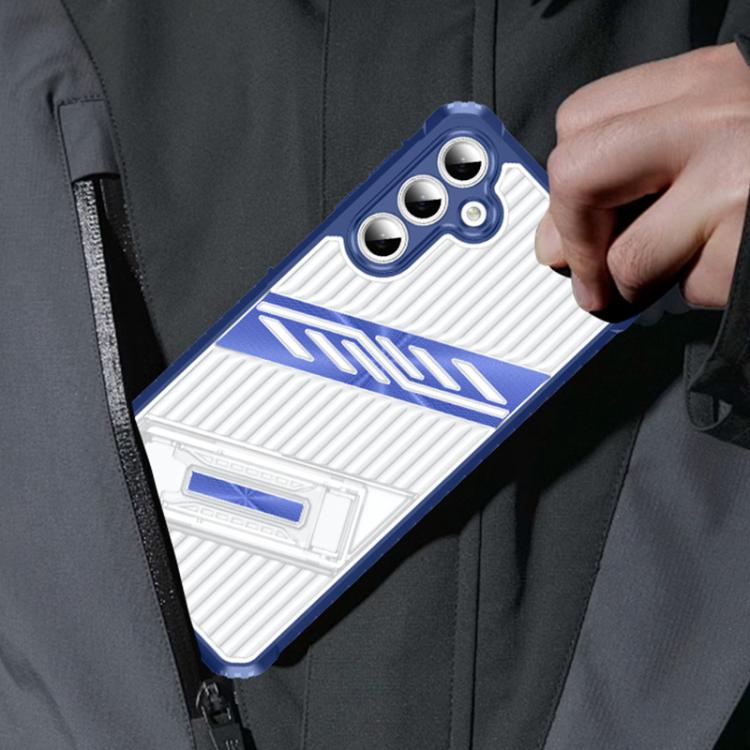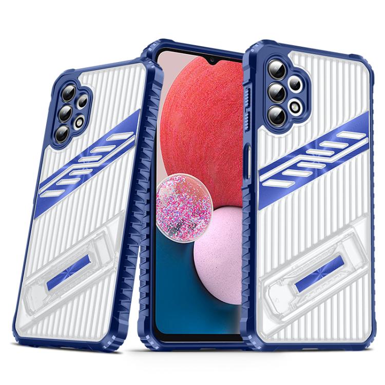 For Samsung Galaxy A13 4G / 5G Plating Holder PC Hybrid TPU Phone Case(Navy Blue)