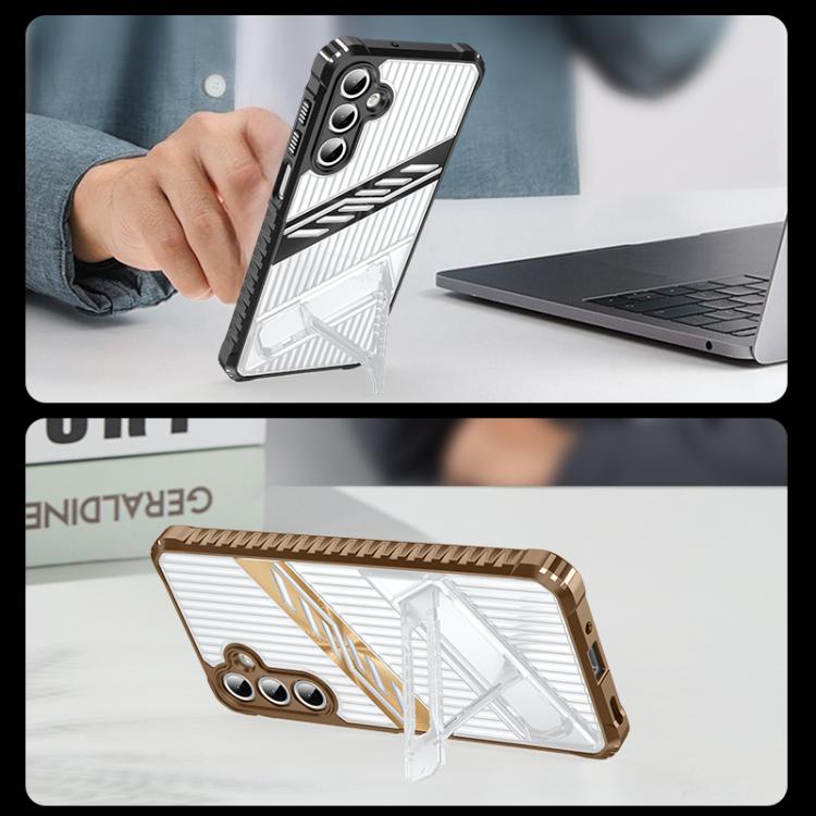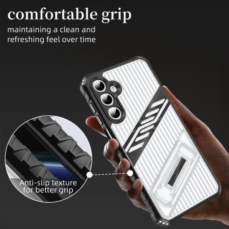For Samsung Galaxy A13 4G / 5G Plating Holder PC Hybrid TPU Phone Case(Space Gray)