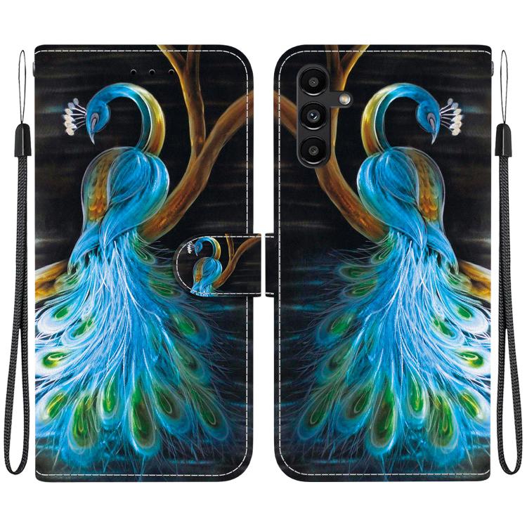 For Samsung Galaxy A13 5G Crystal Texture Colored Drawing Leather Phone Case(Peacock)