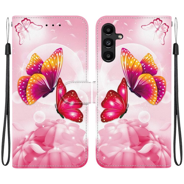 For Samsung Galaxy A15 Crystal Texture Colored Drawing Leather Phone Case(Pink Butterflies)